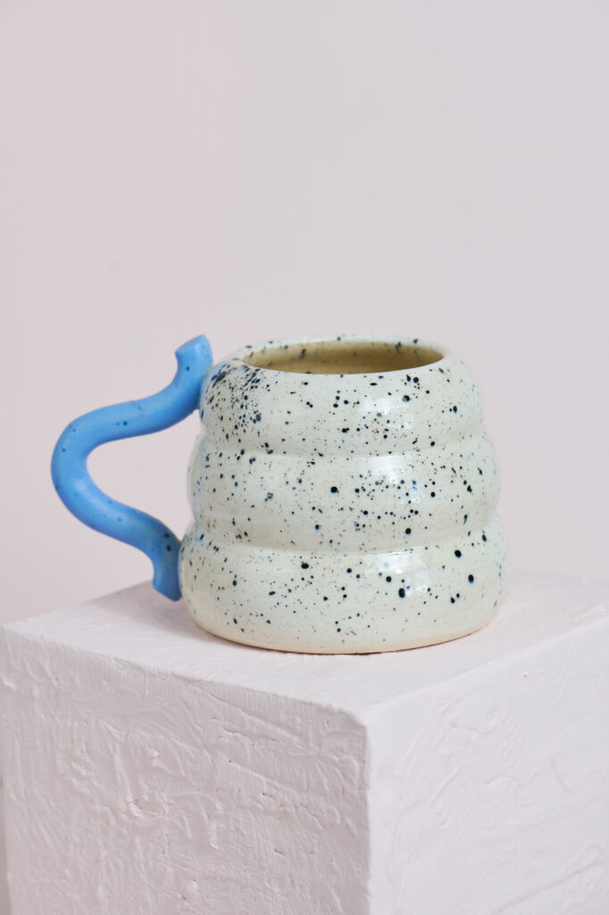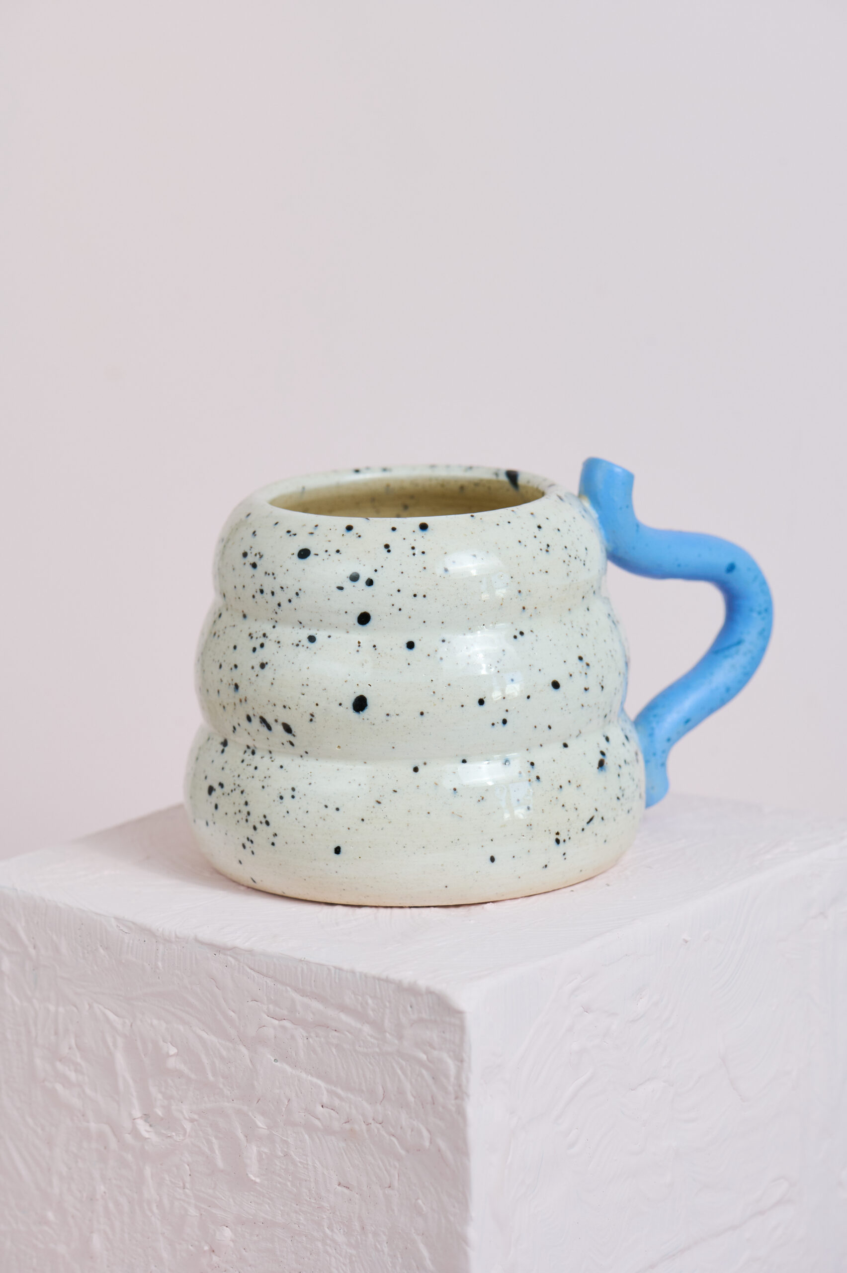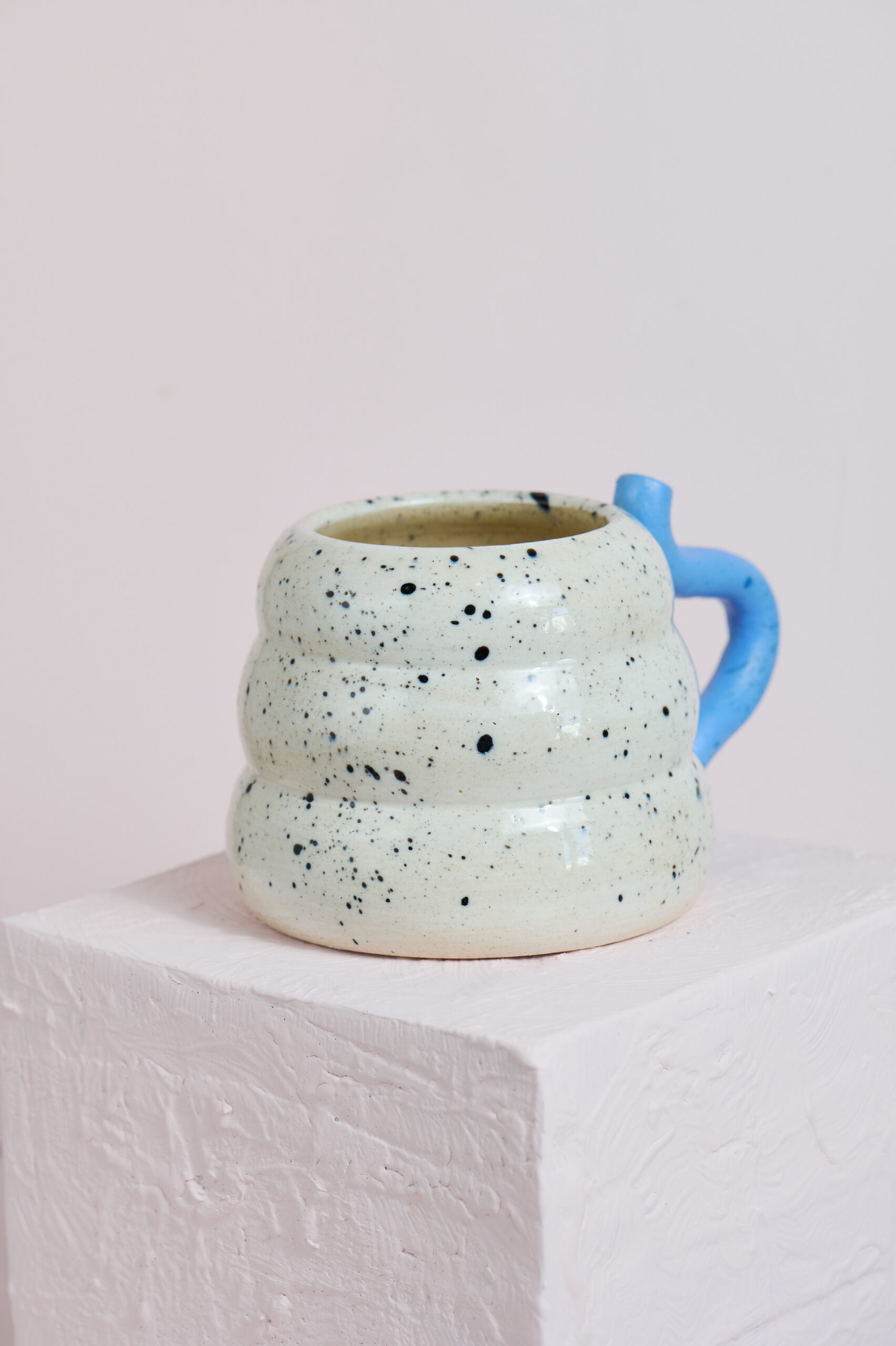 Color: Blanco jaspeado con asa celeste